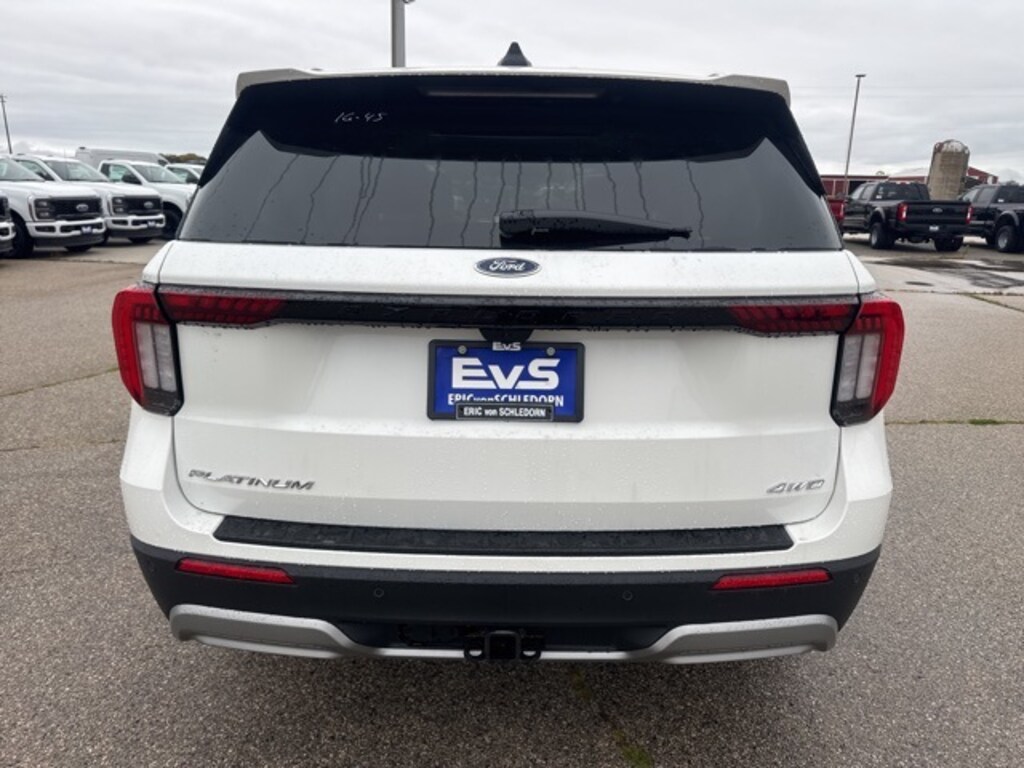 Star White Metallic Tri-Coat 2025 Ford Explorer 4D Sport Utility Platinum 4WD 10-Speed Automatic 2.3L EcoBoost I-4 ActiveX Trimmed Sport Captain's Chairs, Apple CarPlay/Android Auto, Automatic temperature control, Equipment Group 600A Standard Package, Ford BlueCruise Equipped (1-Year Plan) (DISC), Front dual zone A/C, Garage door transmitter, Heated front seats, Heated rear seats, Heated steering wheel, Leather Seating Surfaces Sport Captain Chairs, Lux Leather Package, Memory seat, Navigation System, Platinum Badges on Front Row Seats, Power driver seat, Power Liftgate, Power moonroof, Quilting & Stitching on Door Panels, Quilting & Stitching on Seats, Radio: B&O Sound System by Bang & Olufsen w/HD, Rear air conditioning, Rear window defroster, Ventilated front seats, Wheels: 21" Bright Machined Alum w/Tarnish Dk Pkts.