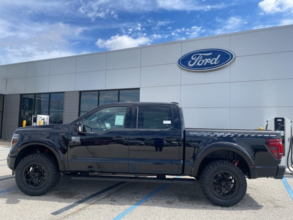 New Price! Black Metallic 2025 Ford F-150 4D SuperCrew Lariat 4WD 10-Speed Automatic 5.0L V8 ROUSH PACKAGE, 2nd Row Heated Seats, 4 Pickup Box Tie-Down Plates, Adjustable pedals, Alloy wheels, Ambient Lighting - Ice Blue Color Only, Bed Utility Package, Console Worksurface, Equipment Group 502A High, Garage door transmitter, Heads-Up Display, Heated front seats, Illuminated Driver & Passenger Visors, Integrated Trailer Brake Controller, LED Box Lighting, Max Tow Electronic Locking w/3.73 Axle Ratio, Mobile Office Package, Navigation system: Connected Navigation, Partitioned Lockable Rear Storage, Power passenger seat, Power Tailgate, Power-Sliding Rear Window, Pro Access Tailgate, Radio: B&O Unleashed Sound System by Bang & Olufsen, Speed control, Split folding rear seat, SYNC 4 w/Enhanced Voice Recognition, Tow/Haul Package, Twin Panel Moonroof, Ventilated front seats, Wheel Well Liner, Wireless Charging.