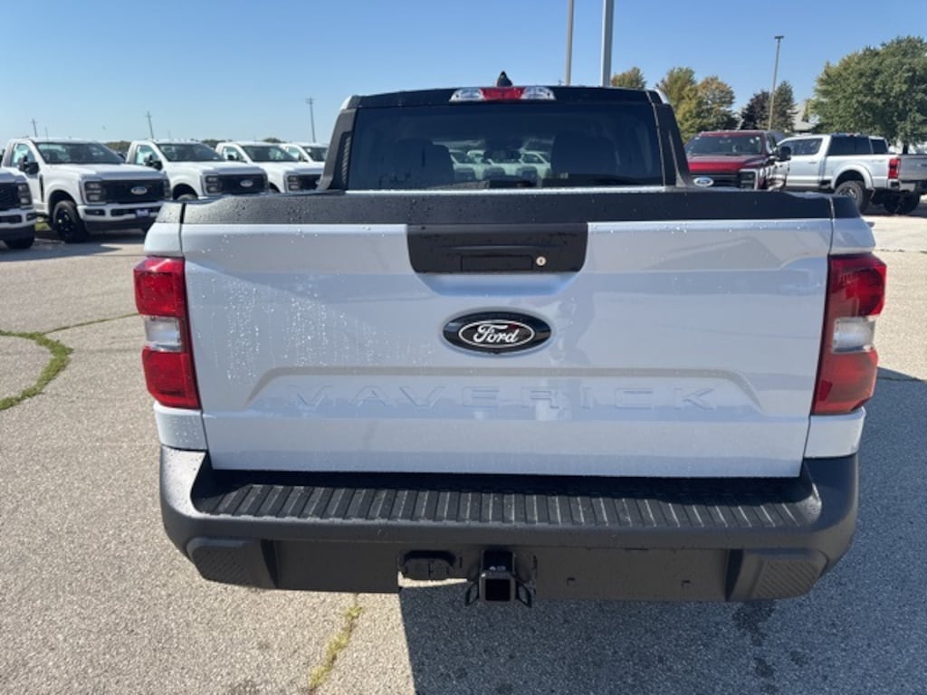 Space White Metallic 2025 Ford Maverick 4D Crew Cab XLT AWD 8-Speed Automatic EcoBoost 2.0L I4 GTDi DOHC Turbocharged VCT 400W Inverter w/USB Console Rear, 4K Tow Package, Auto High Beams, Automatic temperature control, Black Appearance Package, Black Grille, Black Interior Accents, Black Painted Mirrors, BLIS w/Cross-Traffic Alert, Cross Traffic Brake Assist, Equipment Group 302A, Evasive Steering Assist, Ford Co-Pilot360 1.0, Front & Back Black Edition Ford Logo, Heated Mirror w/Painted Black Skull Caps, Heated Seats, Intersection Assist, Lane-Keeping System, LED Box Lighting, Power Glass Manual-Folding Mirrors, Pre-Collision Assist w/Automatic Emergency Braking, Rear Parking Sensors, Rear-View Camera, Remote Start System, Soft Vinyl Wrapped Heated Steering Wheel, Speed control, SYNC 4 w/Enhanced Voice Recognition, Trailer Brake Controller, Trailer Hitch (Class III) 2" Receiver, Transmission Oil Cooler, Unique Cloth Front Bucket Seats w/Black Appearance, Upgraded Cooling Fan, Wheels: 19" Black Painted Aluminum, XLT Luxury Package.