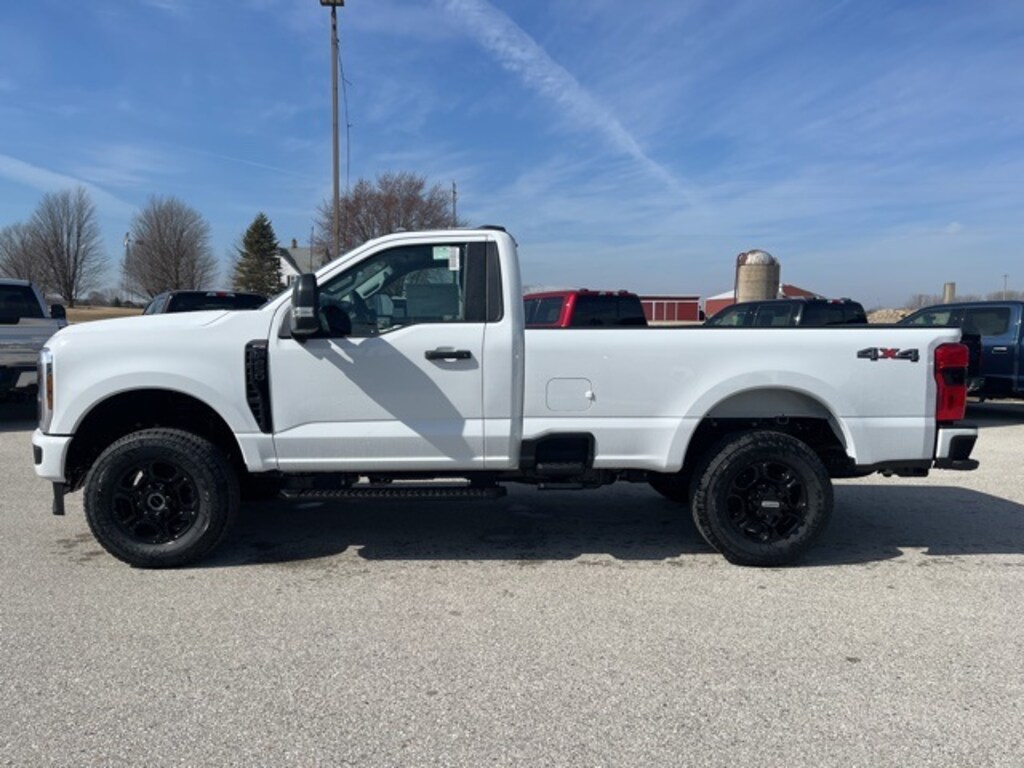 Oxford White 2025 Ford F-250SD 2D Standard Cab XL 4WD 10-Speed Automatic 7.3L V8 PFI SOHC 16V Federal 405hp 410 Amp Dual Alternators, 5th Wheel/Gooseneck Hitch Prep Package, Air Conditioning, AM/FM Stereo w/MP3 Player, Dual AGM 68 AH Battery, Electronic-Locking w/3.73 Axle Ratio, LED Roof Clearance Lights, Platform Running Boards, Retractable Bed Side-Step (Pre-Installed), Snow Plow Prep Package, Speed control, SYNC 4, Upfitter Switches (6).