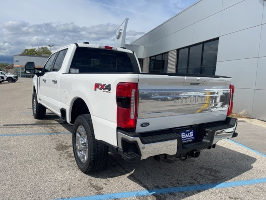 Star White Metallic Tri-Coat 2025 Ford F-350SD 4D Crew Cab King Ranch 4WD 10-Speed Automatic 6.7L High Output Power Stroke V8 Diesel 410 Amp Dual Alternators, 5th Wheel/Gooseneck Hitch Prep Package, Adjustable pedals, All-Weather Floor Mats, Automatic temperature control, Chrome Door Handles, Chrome Exhaust Tip, Chrome Front & Rear Bumpers, Chrome Package, Electronic-Locking w/3.55 Axle Ratio, Flow-Through Console, Front dual zone A/C, FX4 Off-Road Package, Heated front seats, Heated rear seats, Hill Descent Control, LED Roof Clearance Lights, Max Recline Seats, Navigation System, Off-Road Specifically Tuned Shock Absorbers, Onboard Scales & Smart Hitch, Order Code 710A, Power passenger seat, Rear window defroster, Snow Plow Prep Package, SYNC 4 w/Enhanced Voice Recognition, Twin Panel Power Moonroof, Unique Chrome Mirror Caps, Unique FX4 Off-Road Box Decal, Unique King Ranch Leather 40/Console/40 Seats, Upfitter Switches (6), Ventilated front seats, Wheels: 20" Chrome PVD Aluminum.