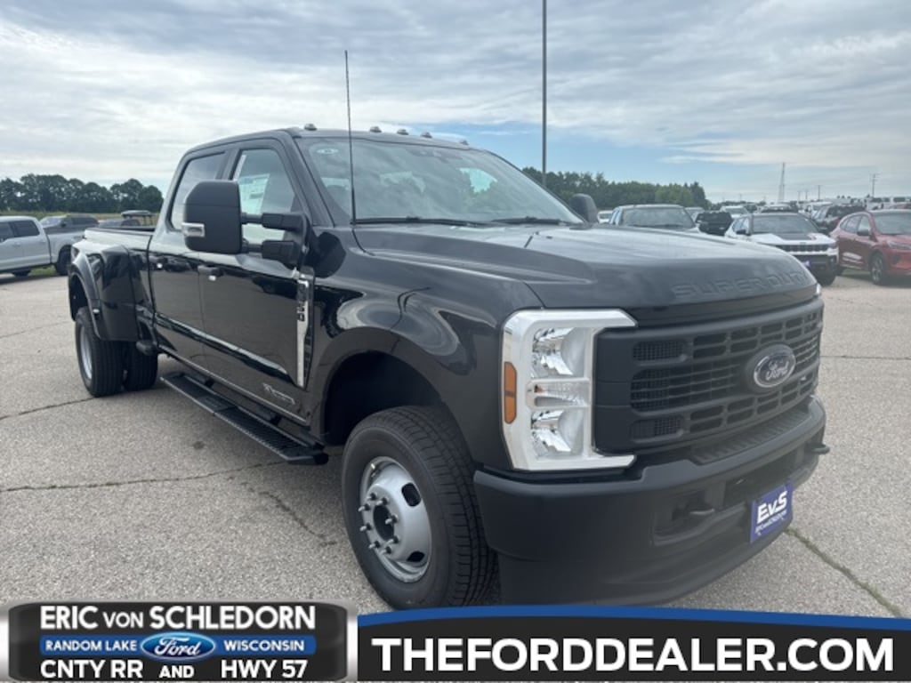 Agate Black Metallic 2025 Ford F-350SD 4D Crew Cab XL DRW 4WD 10-Speed Automatic Power Stroke 6.7L V8 DI 32V OHV Turbodiesel 120V/400W Outlet, 5th Wheel/Gooseneck Hitch Prep Package, Camper Package, Defrost w/Fixed & Privacy Glass, Limited Slip w/4.10 Axle Ratio, Order Code 620A, Power-Sliding Rear-Window w/Defrost, Privacy Glass, Rear Stabilizer Bar & Auxiliary Springs, Upfitter Switches (6).