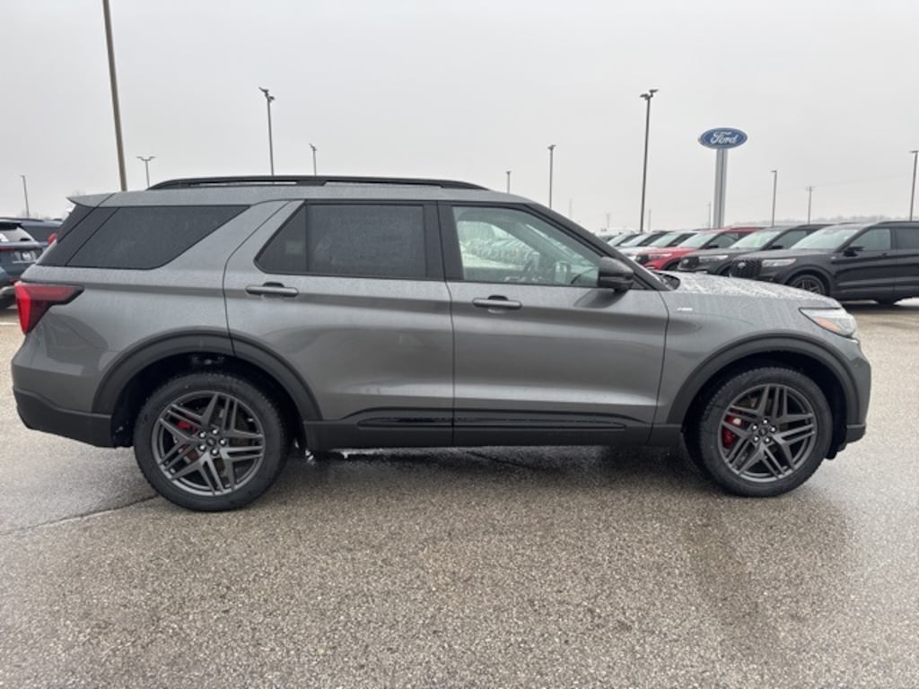 Gray Metallic 2026 Ford Explorer 4D Sport Utility ST-Line 4WD 10-Speed Automatic 2.3L EcoBoost I-4 110V/150W AC Power Outlet, 2nd Row Heated Seats, Ambient Lighting, Apple CarPlay/Android Auto, Auto-Dimming Interior Rear-View Mirror, Automatic temperature control, BlueCruise (equipment + 1-Year + 90-Day Plan), BlueCruise Hardware, Equipment Group 300A Standard Package, Exterior Parking Camera Rear, Front and 2nd Rows Floor Liners with Carper Floor Mats, Front dual zone A/C, Fully automatic headlights, Heated door mirrors, Heated front seats, Heated steering wheel, Heated Unique Cloth Captain's Chairs, Internet access capable: FordPass Connect 5G, Manual-Folding Sideview Mirrors, Memory Driver's Seat, Navigation System, Panoramic Fixed Glass Roof with Power Shade, Performance Brakes, Power driver seat, Power Liftgate, Power passenger seat, Premium Package, Radio: B&O Sound System by Bang and Olufsen, Rain-Sensing Wipers (front Only), Rear air conditioning, Rear window defroster, Red Painted Performance Front and Rear Brake Calipers, Remote keyless entry, ST-Line Street Pack, Wheels: 21" Magnetite-Painted Aluminum.