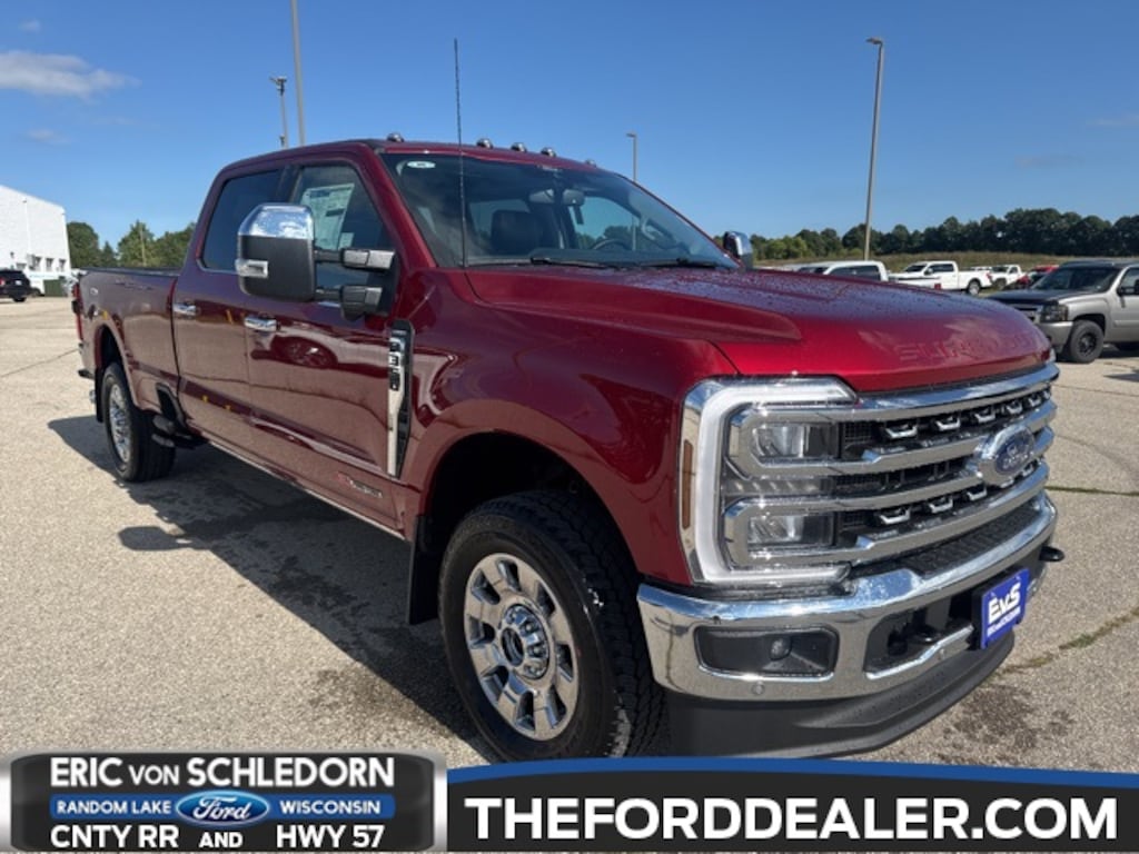 New Price! Ruby Red Metallic Tinted Clearcoat 2026 Ford F-350SD 4D Crew Cab Lariat 4WD 10-Speed Automatic 6.7L High Output Power Stroke V8 Diesel 4-Way Adjustable Headrests, 410 Amp Dual Alternators, 6" Angular Bright Anodized Step Bars, Chrome Door Handles, Chrome Exhaust Tip, Chrome Package, Dual AGM 68 AH Battery, Electronic-Locking w/3.55 Axle Ratio, Engine Block Heater, Ford Connectivity Package (1-Year Included), Front Splash Guards/Mud Flaps (Pre-Installed), FX4 Off-Road Package, Head-Up Display, Heated front seats, Heated steering wheel, Hill Descent Control, Lane Departure Warning System, Lariat Premium Package, Lariat Ultimate Package, Off-Road Specifically Tuned Shock Absorbers, Order Code 618A, Power-Deployable Running Boards, Power-Sliding Rear-Window w/Defrost, Privacy Glass, Pro Trailer Backup Assist, Pro Trailer Hitch Assist, Radio: B&O Unleashed Sound System by Bang & Olufsen, SiriusXM w/360L, Snow Plow Prep Package, SYNC 4 w/Enhanced Voice Recognition, Tailgate Step & Handle, Unique Chrome Mirror Caps, Unique FX4 Off-Road Box Decal, Upfitter Switches (6), Wheels: 20" Chrome PVD Aluminum.